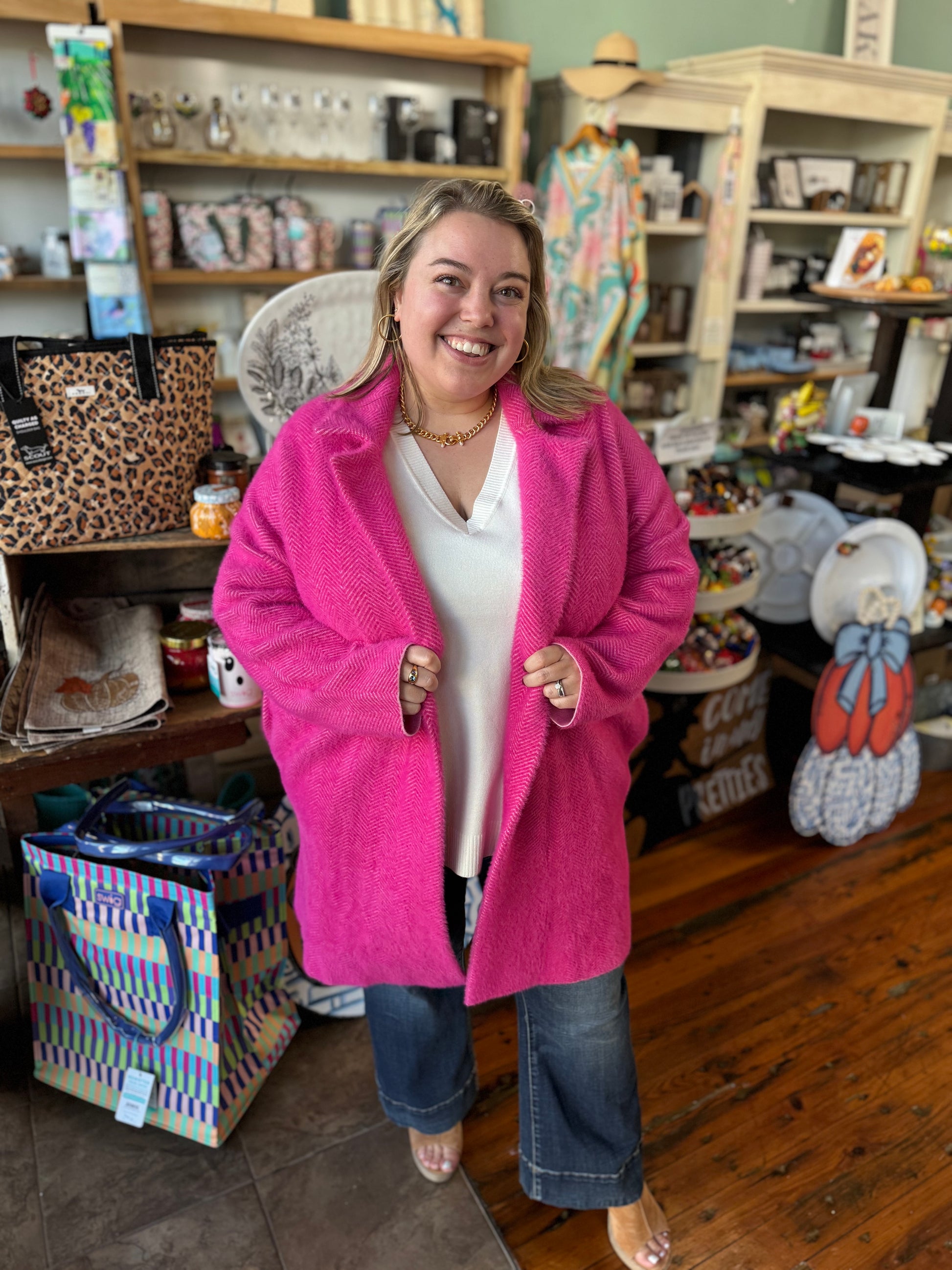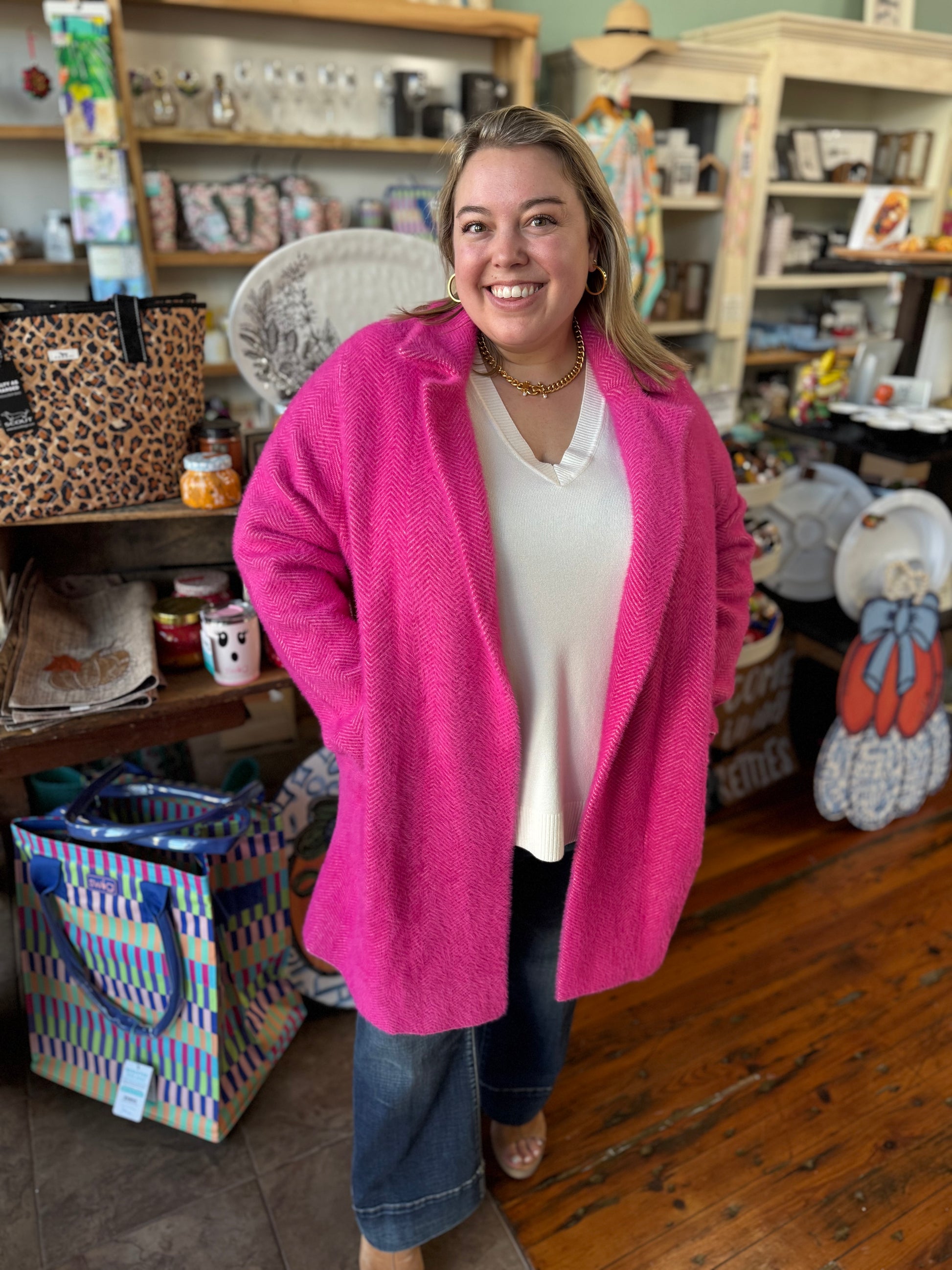 Deep Raspberry Pink Fuzzy Coatigan by Liverpool