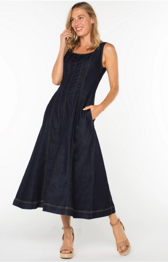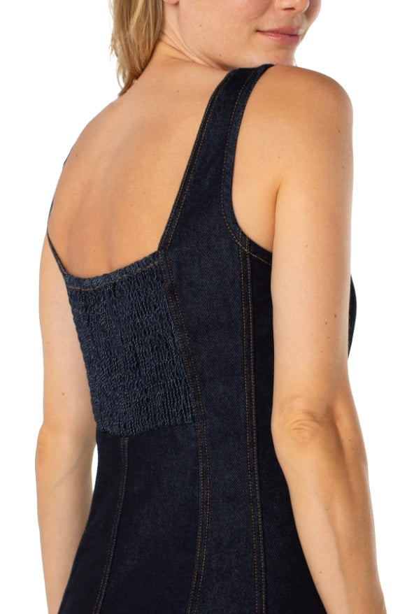 Indulge in the ultimate comfort and style with this gorgeous sleeveless midi dress that features a smocked back. Crafted in a versatile indigo rinse wash, this dress is guaranteed to elevate your wardrobe.