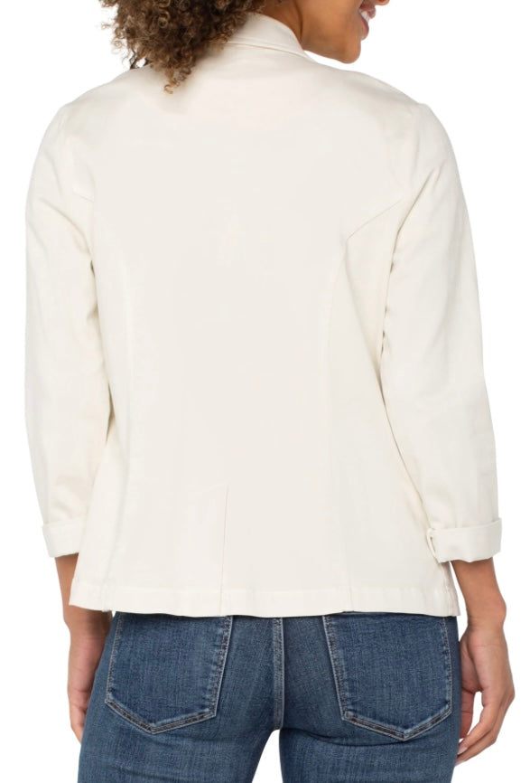 Feel effortlessly polished in our fitted twill blazer, designed with a soft touch fabric. Perfect for business meetings when paired with the coordinating trousers, or dress it down with denim and a classic tee.