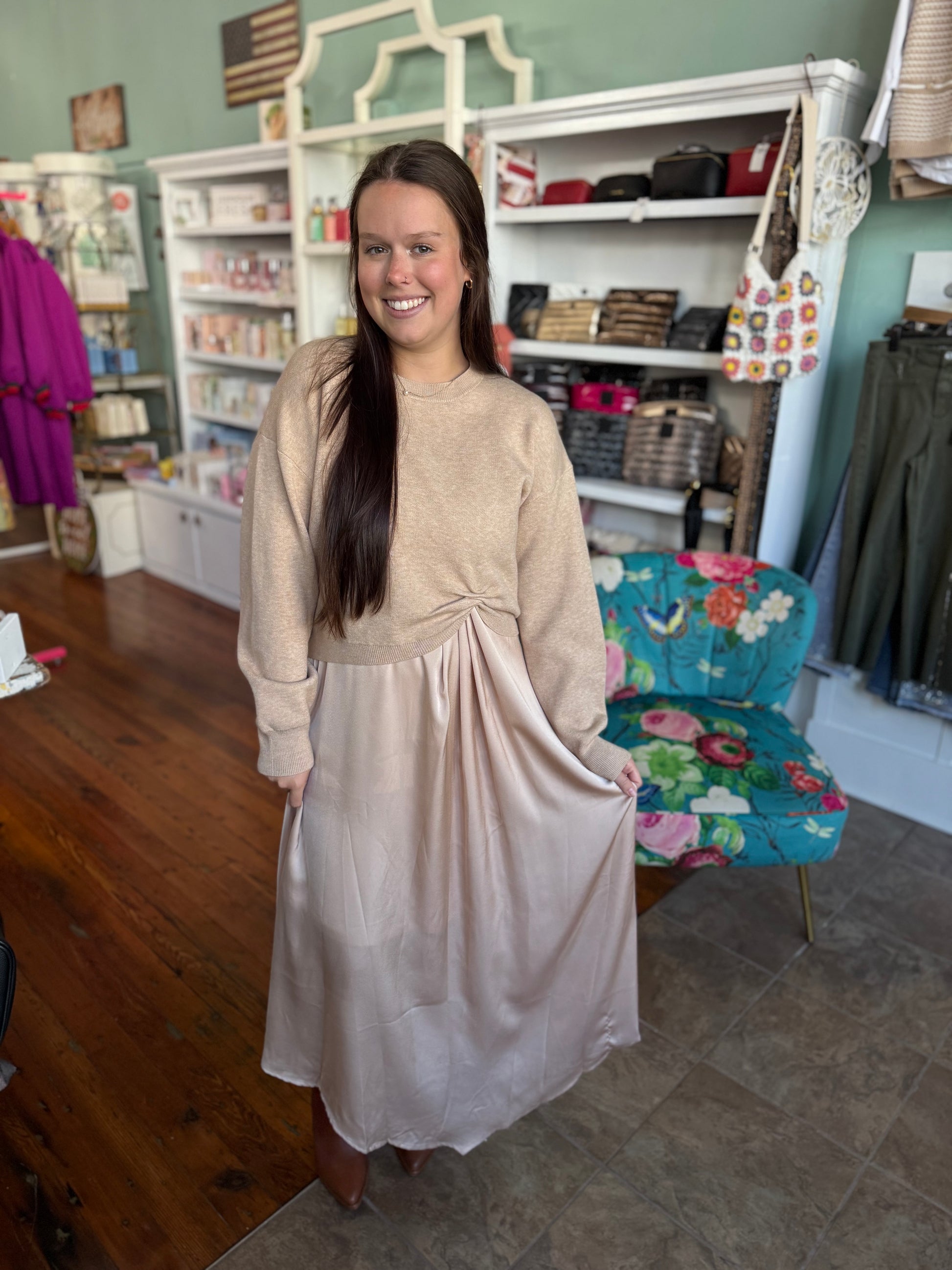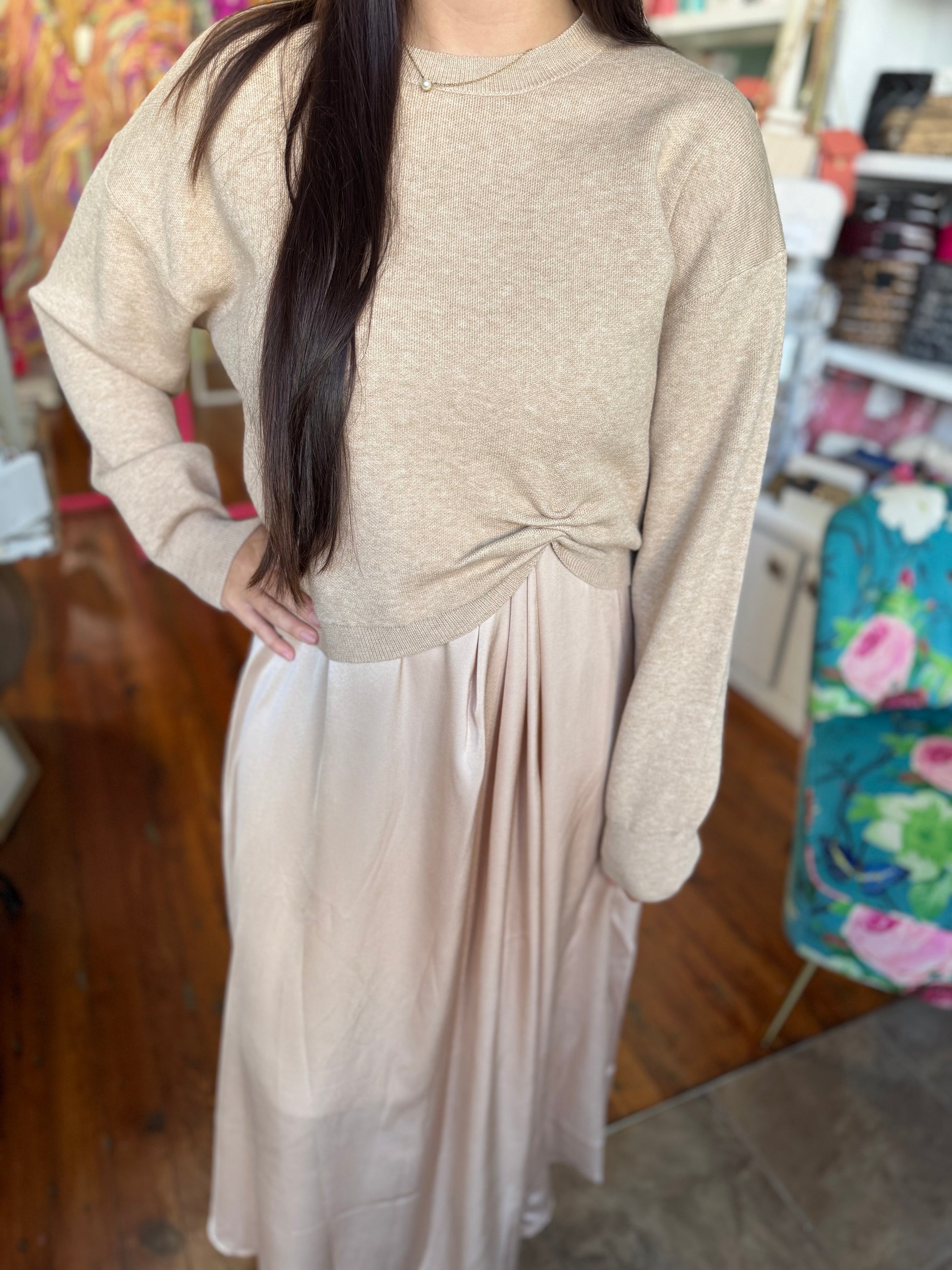 Twofer Style Champagne Sweater & Dress